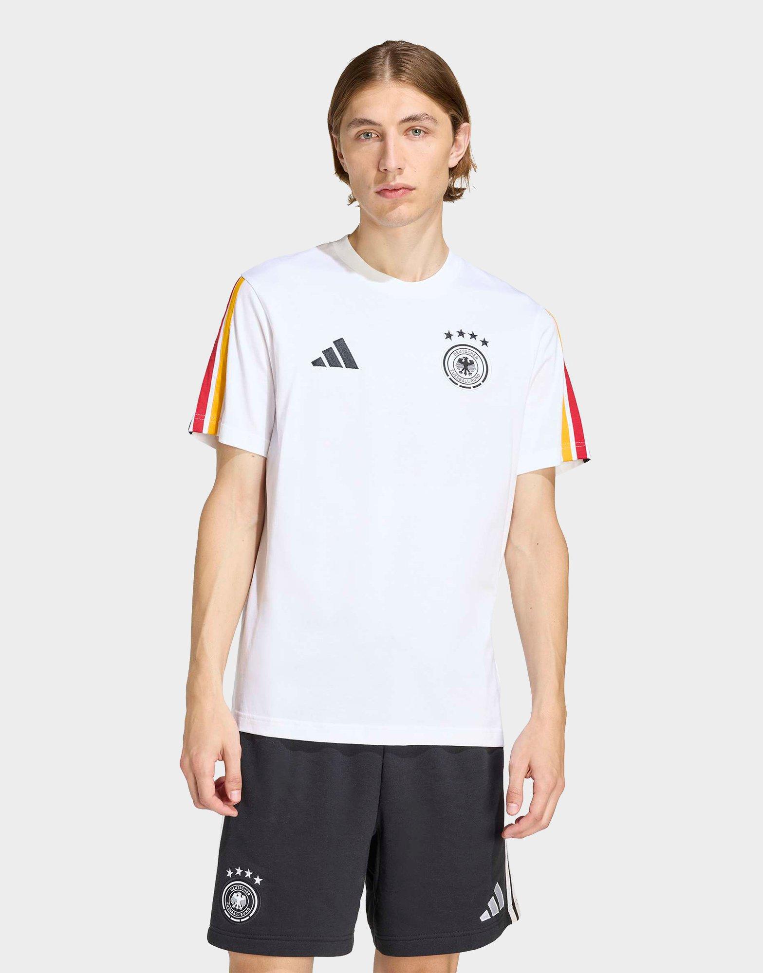 Rep German football pride with this Adidas Cotton DNA Germany T-Shirt. Featuring a standard fit and short sleeves, it showcases white with red and black accents inspired by the German national team. The premium cotton construction delivers comfortable everyday wear with authentic team styling. Perfect for match days or casual support, this tee brings Adidas quality and German football heritage to your wardrobe. Style Code: KB4401