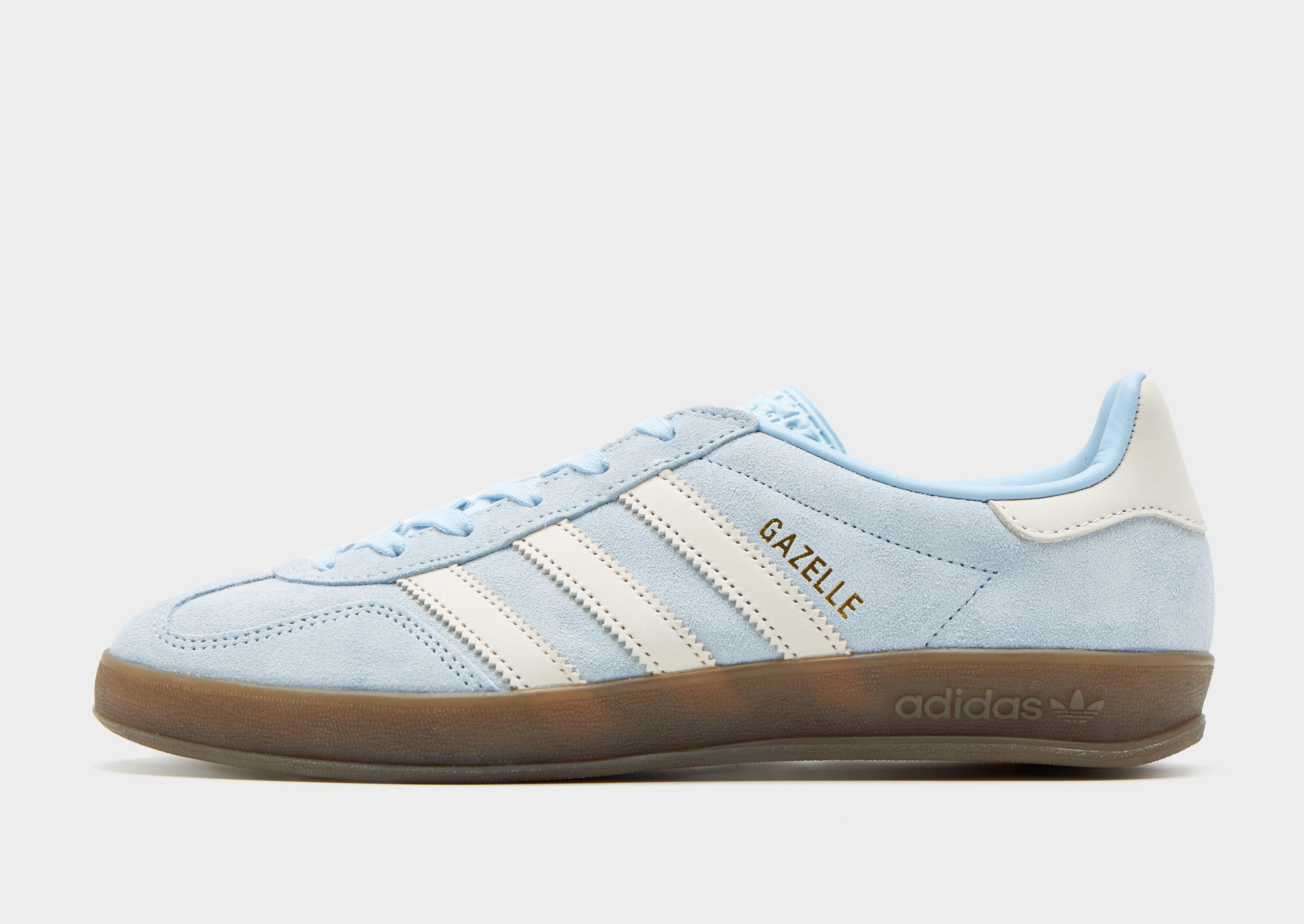 Add a retro vibe to your sneaker rotation with these women's Gazelle Indoor shoes from adidas Originals. In a Blue colourway with Cream details, these JD-exclusive, low-cut shoes have a premium suede upper and padded tongue for a classic look and feel. They're sat above a smooth midsole for lightweight cushioning and a rubber outsole for essential grip. Finished off with signature Adi 3-Stripes, a retro Trefoil label on the tongue and Gazelle branding. Style Code: JI2717