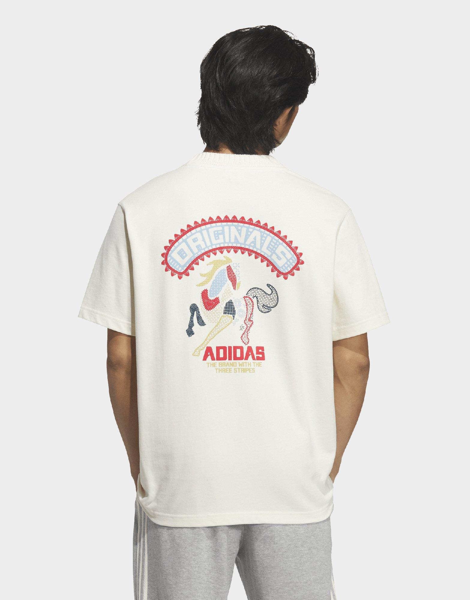 Ring in the new year with this men's Adidas Lunar New Year Graphic T-Shirt, showcasing front and back logo graphics. Standard fit and short sleeves create a versatile piece for festive celebrations or casual wear. White colourway with red detailing delivers classic luck-inspired colour blocking. Celebrate the Year of the Horse in style! Special edition design merges cultural heritage with modern Adidas style. Style Code: KT0713