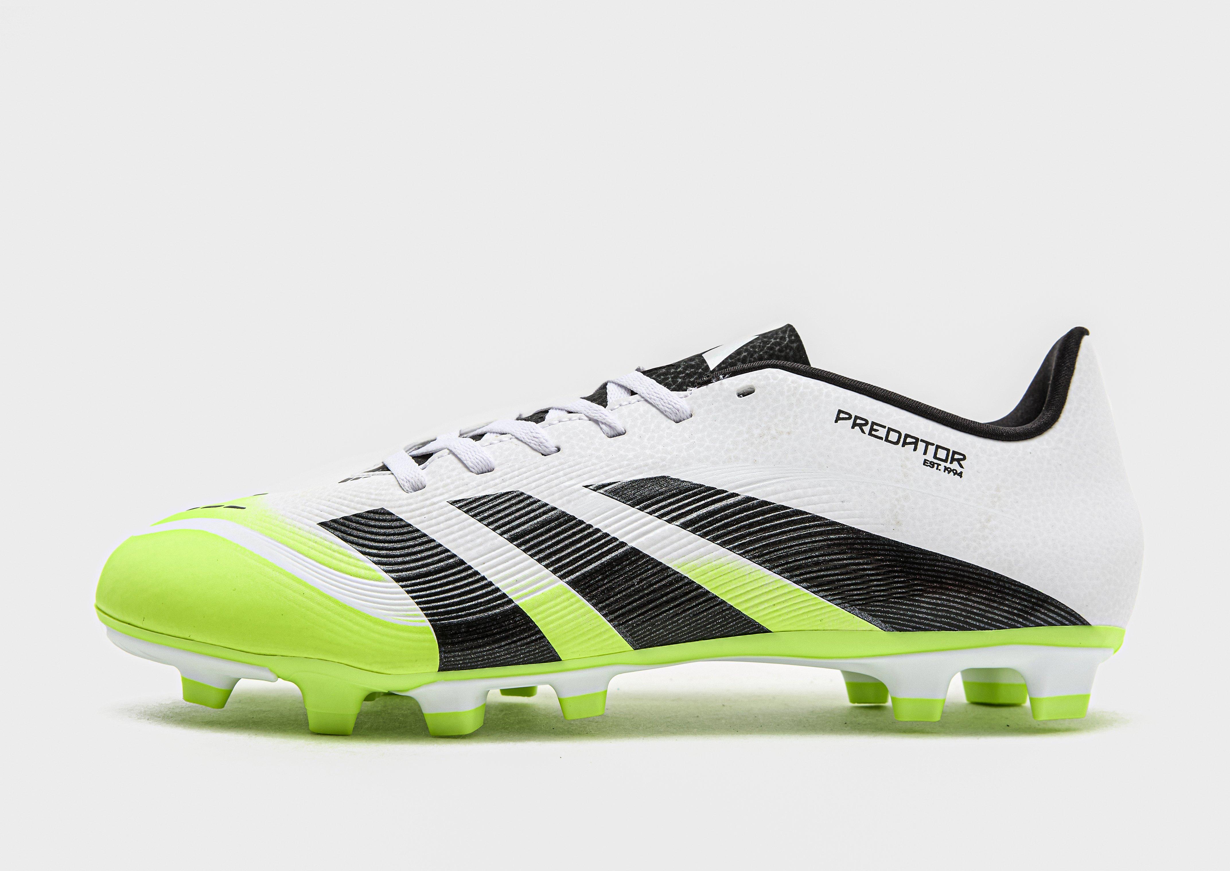 Take your game to a new level with these men's Predator Club FG football boots from adidas. In a White and Lucid Lemon colourway, these boots are cut from durable synthetic material. They're equipped with Strikeprint texturing in the upper for an accurate strike. The textile lining offers a snug and secure fit. A stud plate underfoot brings traction and acceleration to firm ground pitches. Finished up with signature adidas Predator branding. | JH8847