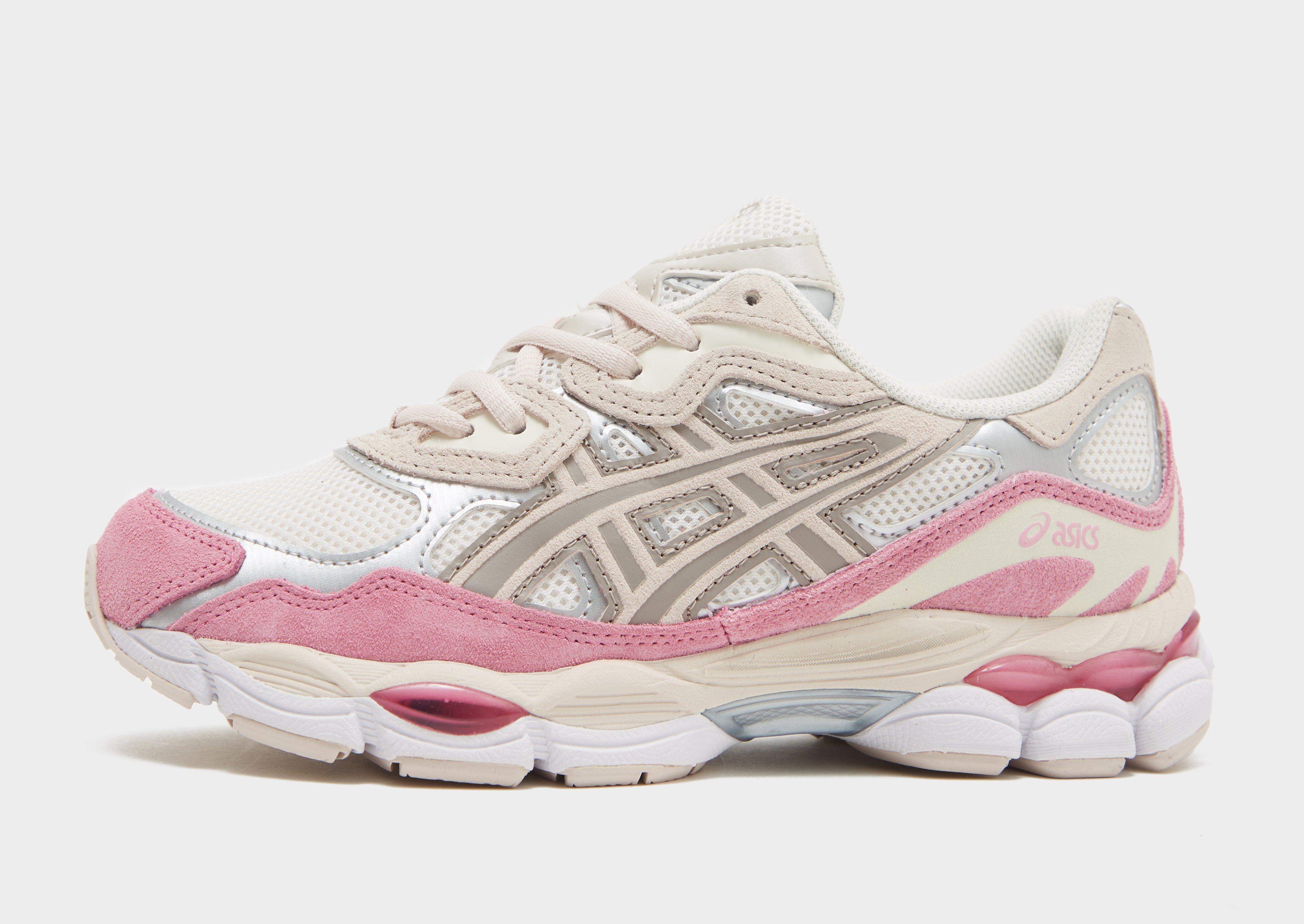 Step into a modern classic with these women's GEL-NYC trainers from ASICS. In a Cream, Mineral Beige and Pink colourway, these stacked runners draw inspo from the city with a layered mesh, synthetic and suede upper. The feature a padded tongue and collar for a snug fit, while the GEL-CUMULUS 16 tooling hits the foam midsole. Featuring rearfoot and forefoot GEL tech inserts for a responsive, shock-absorbing ride, they're finished with a solid rubber outsole and oversized ASICS branding.
