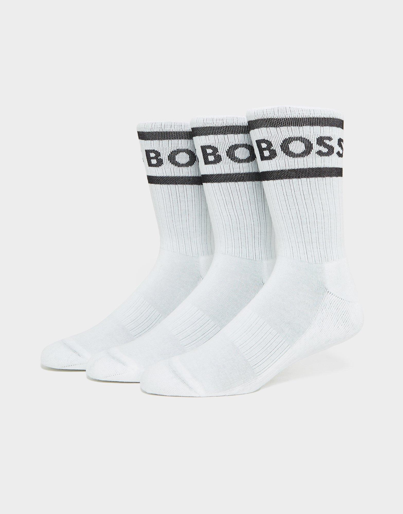 When one isn't enough, stock up on the essentials with this men's 3-Pack Rib Stripe Socks from BOSS. In a White colourway, these crew-length socks are cut from a stretchy cotton blend. They feature ribbed cuffs for comfort and reinforced areas in the heel and toe for a durable wear. Rounded off with stripes and BOSS branding at the top. Machine washable.