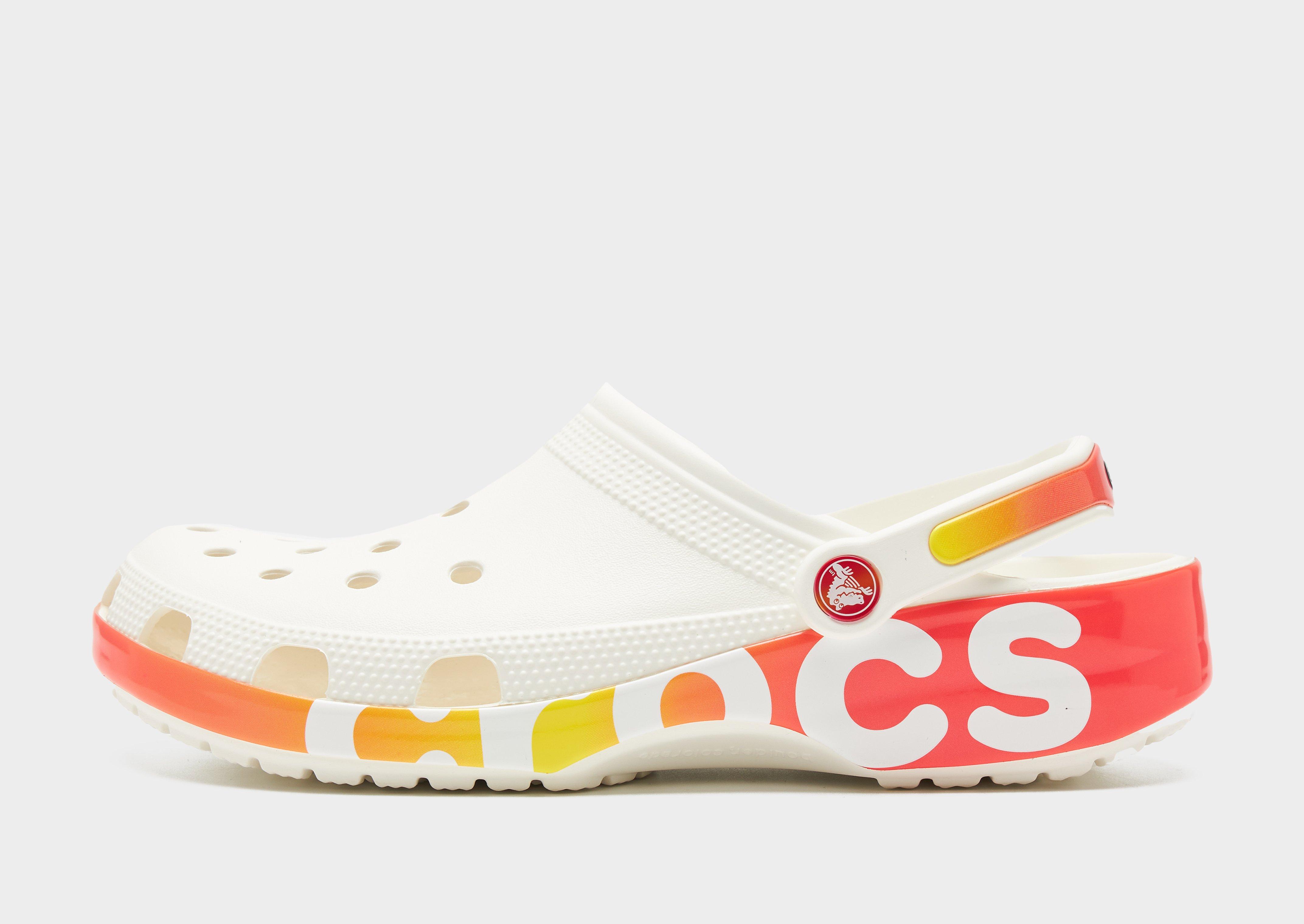 Add an iconic look to your footwear rotation with these men's Classic Clogs from Crocs. In a White colourway with tonal details, these clogs have a lightweight Croslite upper that has ventilation ports for breathability. They feature a soft footbed that offers responsive cushioning with every step, while the outsole keeps you gripped to the surface. Comfortable, simple, these clogs are easy to wear - just slip on and get going! Wear them around the house, to the shops, and pull the heel strap down to lock in.