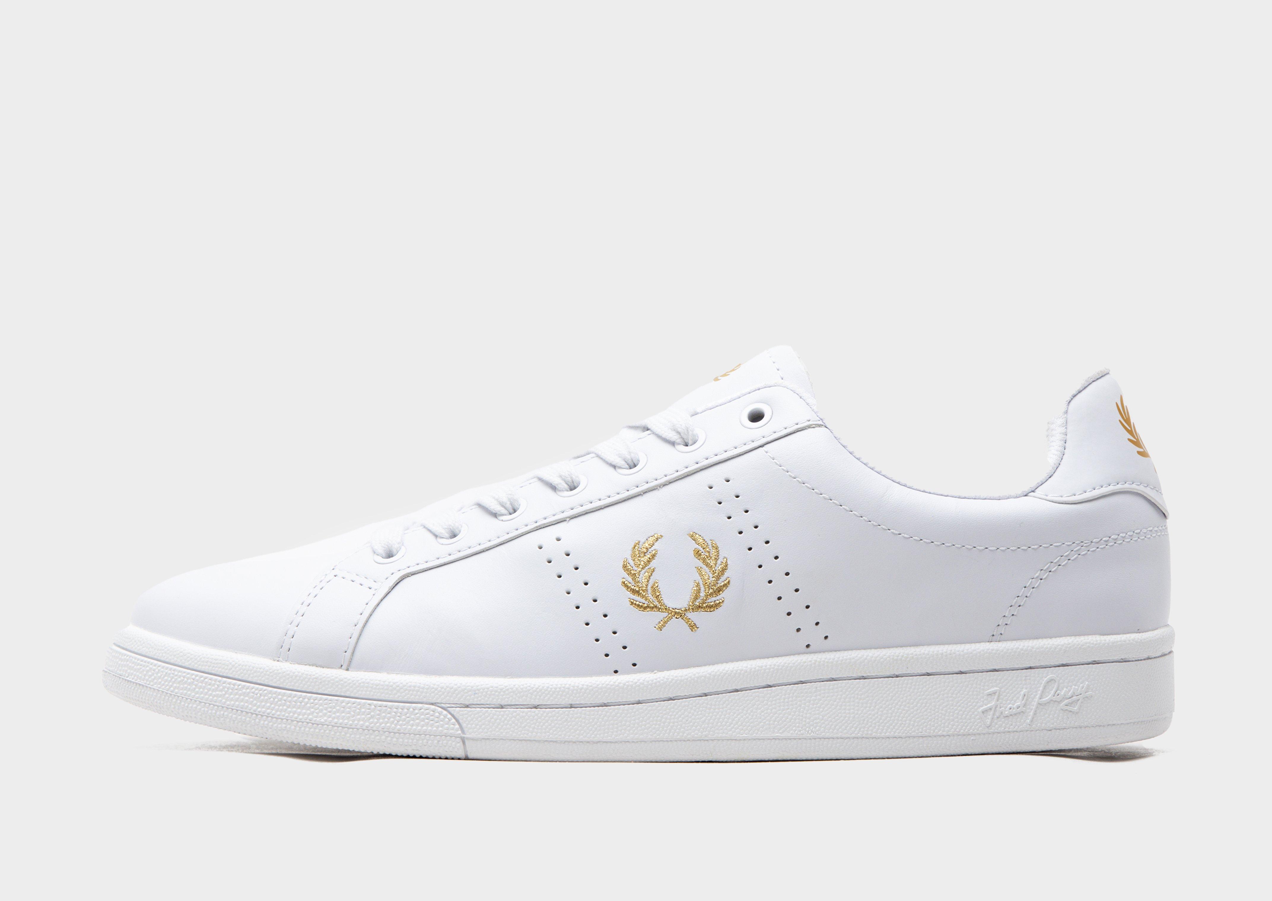 Inspired by the courts, these men's B721 Leather trainers from Fred Perry add a premium edge to your rotation. In a clean white colourway, these low-profile sneakers are built with a smooth leather upper with a perforated side panel. They feature a secure lace up fastening, rounded toe and a padded ankle collar for a comfy fit. Sat on a tonal, vulcanised midsole for lightweight cushioning, these everyday trainers are finished with a grippy rubber tread, contrasting heel overlay and the iconic Laurel Wreath logo embroidered throughout.