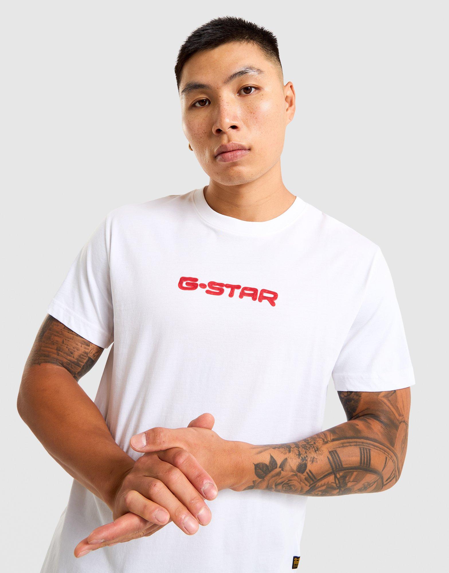 This G-Star men's t-shirt in white offers clean styling with cotton-blend comfort. The short sleeve design with standard fit provides a classic look. Premium construction ensures durability and shape retention through countless wears. A versatile essential that works for casual outings or layering under jackets.
