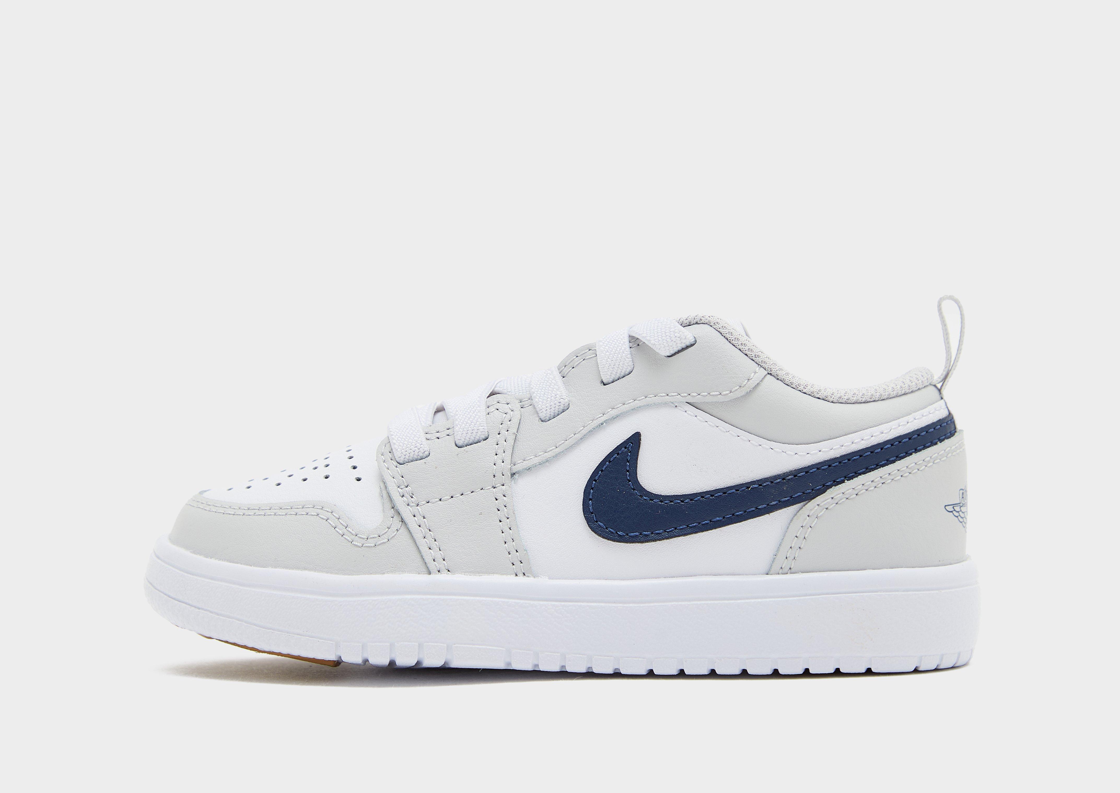 Grab the kiddo some fresh b-ball style with these children's Air 1 Low sneakers from Jordan. In a White, Midnight Navy and Neutral Grey colourway, these sneaks are cut from smooth and durable leather for lasting wear. They feature a lace fastening and hook-and-loop strap to lock 'em in, with a heel loop for easy on-off. Underfoot, they sit on a soft foam midsole for a smooth ride, with a grippy rubber outsole for firm traction. Finished up with the Swoosh, Jumpman logo and Wings branding.