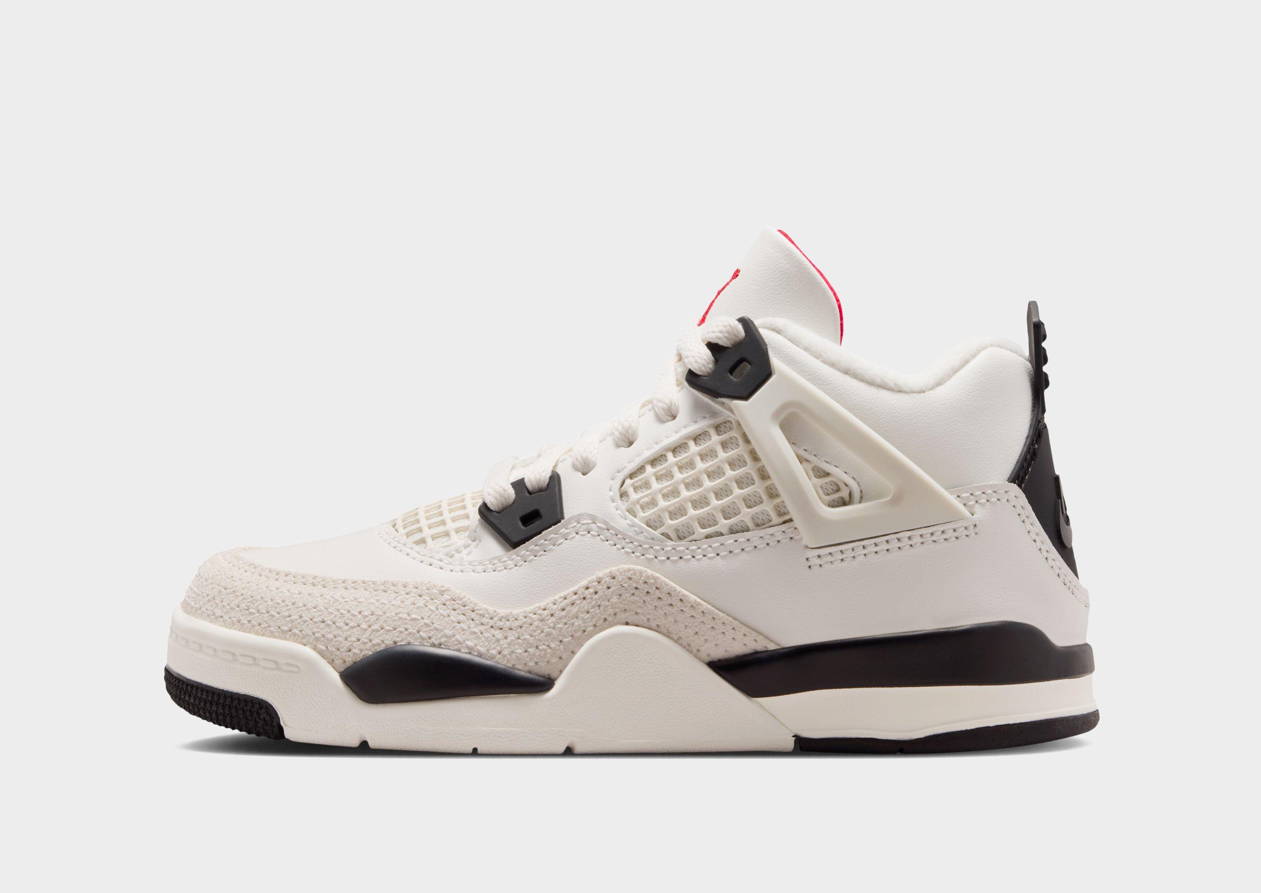 Level up your sneaker rotation with the iconic Air Jordan 4, a symbol of sneaker culture and streetwear fashion. Landing in a Cream colourway with Black details, these children's sneakers have a durable canvas upper for a clean and classic look. They feature a lace fastening with a padded ankle collar for a snug, supportive feel. Underfoot is a soft foam midsole with a visible Air-Sole unit to the heel for cushioned comfort with every step. With a paint-splatter pattern to the rubber outsole for a statement style and traction, they're finished up with Jordan branding to the tongue. Style Code: IM4028-100