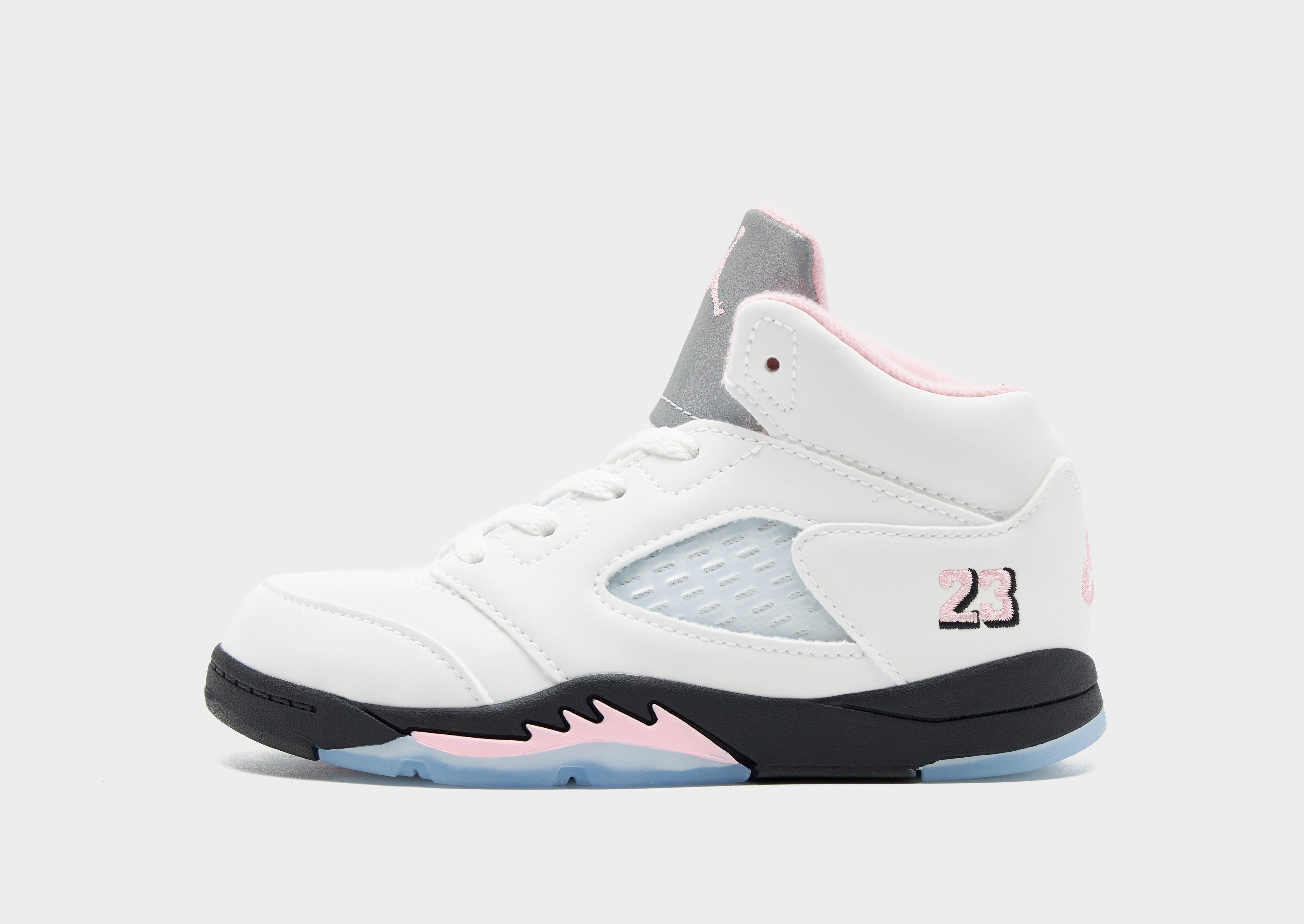 Take your sneaker game to the next level with the Air Jordan 5, inspired by Michael Jordan’s legendary performances on the court. In a White colourway with Medium Soft Pink details, these high-top sneakers have a real and synthetic leather upper, with an ultra-padded collar and tongue for a plush feel. The AJ5 features a tonal lace-up closure with an adjustable toggle for a personalised fit, they're sat on a legendary midsole equipped with Nike Air cushioning in the forefoot and heel for a responsive, lightweight step. With a signature Herringbone outsole that includes flex grooves for natural traction, these premium shoes are finished off with the world-famous Jumpman logo to the tongue and heel. With its bold silhouette and eye-catching colourway with Pink detailss, this sneaker has become a symbol of self-expression and individuality across sneaker culture and streetwear fashion. Style Code: HQ7981-102