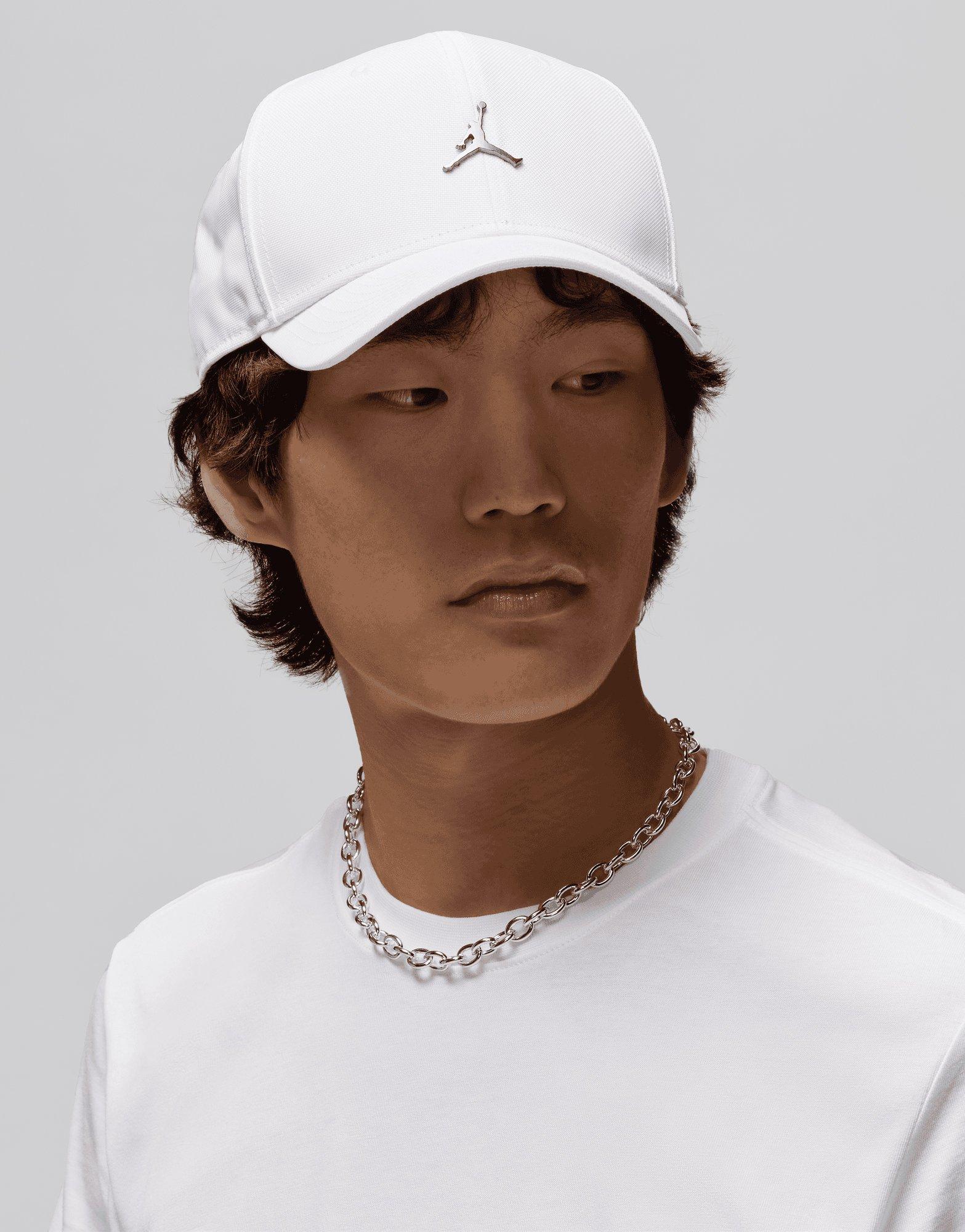 Upgrade your 'fits with this Rise Metal Jumpman Cap from Jordan. In a White colourway, this cap is made with soft but durable woven nylon for lasting wear. With a stitched panel construction, it has breathable eyelets through the crown and a pre-curved visor for a classic look. It has an adjustable back strap for a custom fit, and is finished with a metal Jumpman at the front.