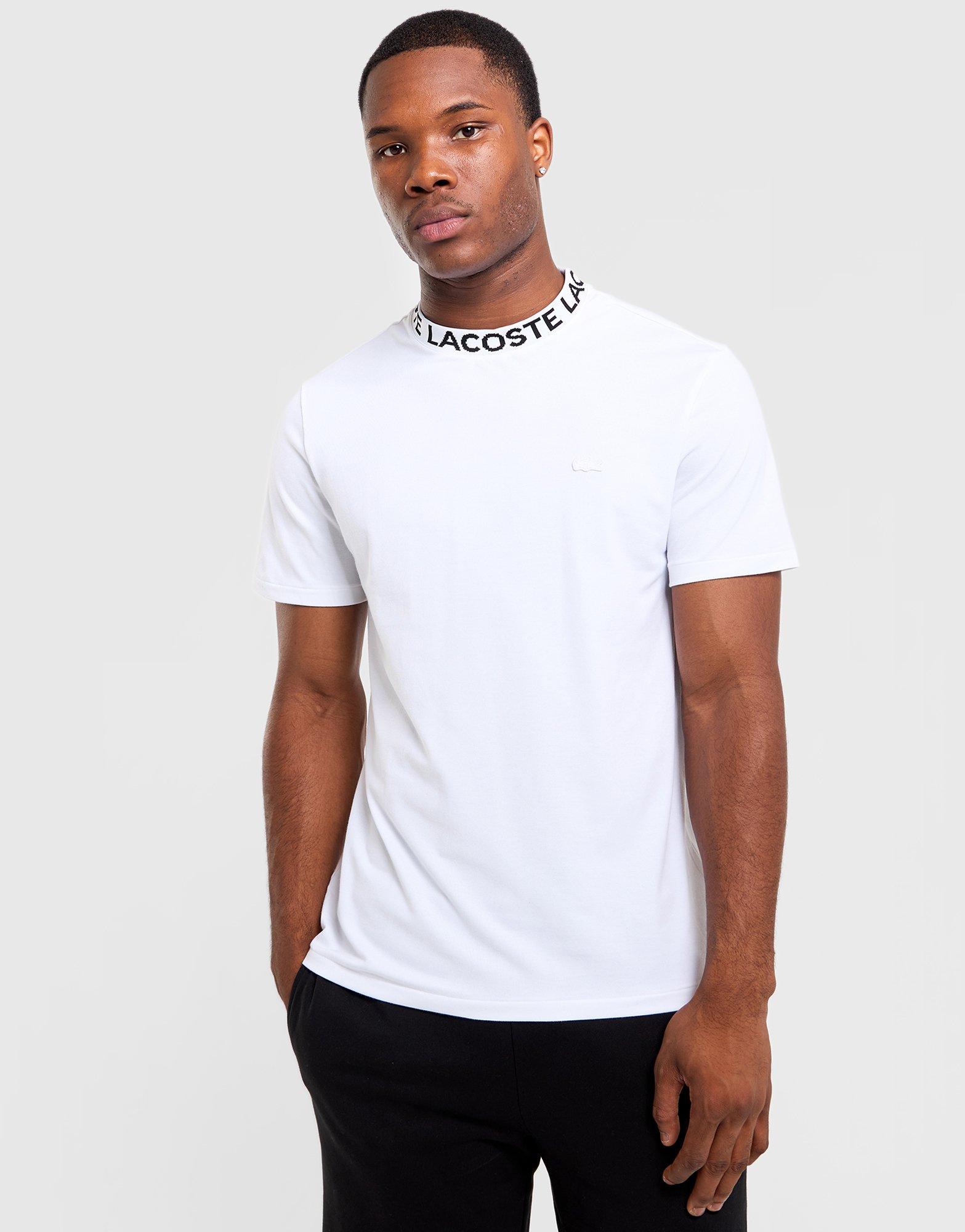 Refresh your essentials with this men's Lacoste Jacquard Neck Tee, delivering French elegance in a crisp white colourway with black detailing. The standard fit and short sleeves offer timeless comfort and versatility across your wardrobe. Crafted with Lacoste's signature quality, this tee elevates everyday style with refined detailing. It's a go-to piece that works effortlessly with shorts, track pants, or denim. Style Code: TH9582001