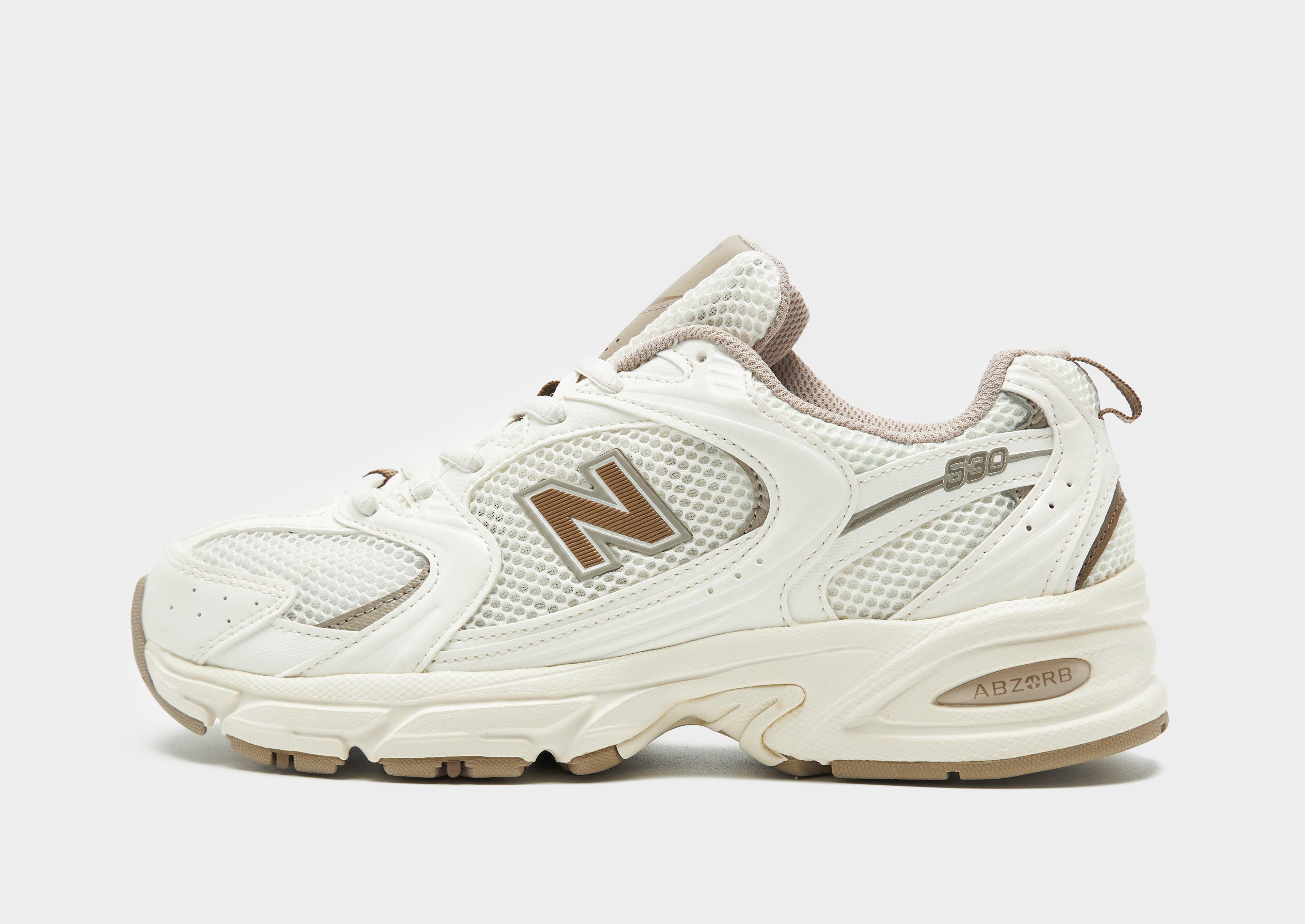 Level up your off-duty rotation with these women's 530 shoes from New Balance. Bringin' an old-school running silhouette to your game, these JD-exclusive, lightweight sneakers have an Off White upper that features a smooth textile and overlaid suede panels. With a tonal lace-up fastening and plush ankle collar for step-in comfort, they're sat on a flared midsole for everyday cushioning. With a bold rubber outsole that runs up the heel, these kicks are finished off with an oversized 'N' logo to the sidewall and New Balance branding to the tongue.