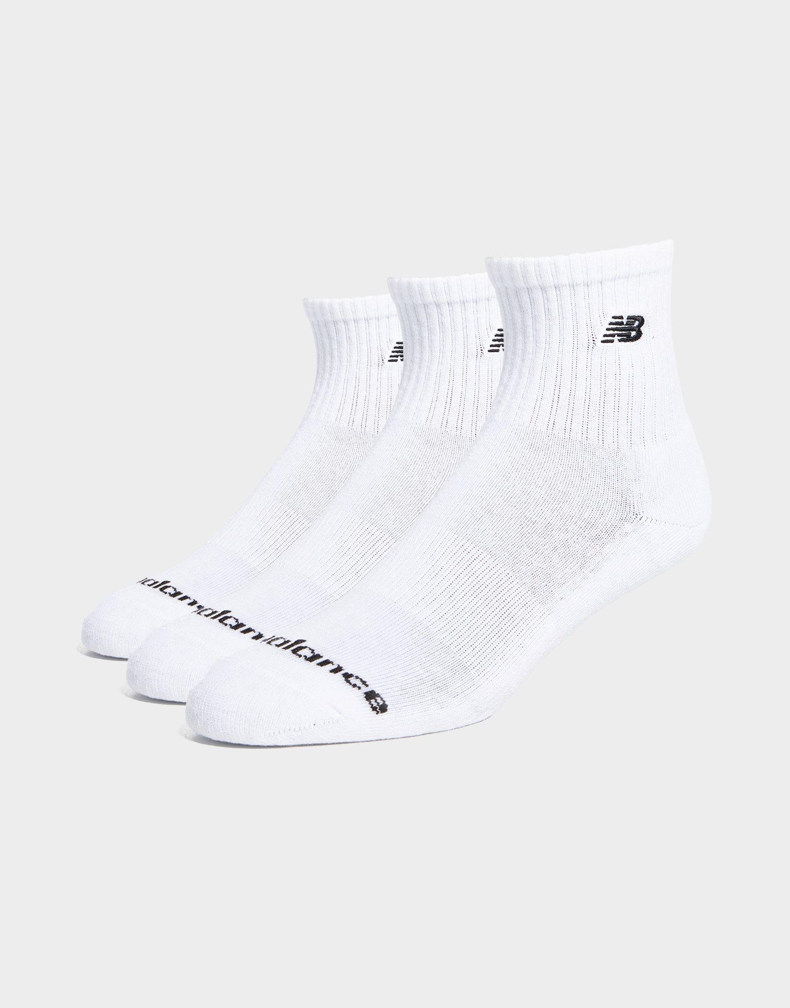 Refresh your rotation with this JD-exclusive 3-pack of New Balance crew socks in clean white and black. Made from soft cotton, they deliver everyday comfort with a breathable, lightweight feel. The crew length brings classic sport styling, perfect for pairing with trainers or lifestyle kicks. Finished with subtle NB branding for an easy, versatile essential. Style Code: LAS50693WT