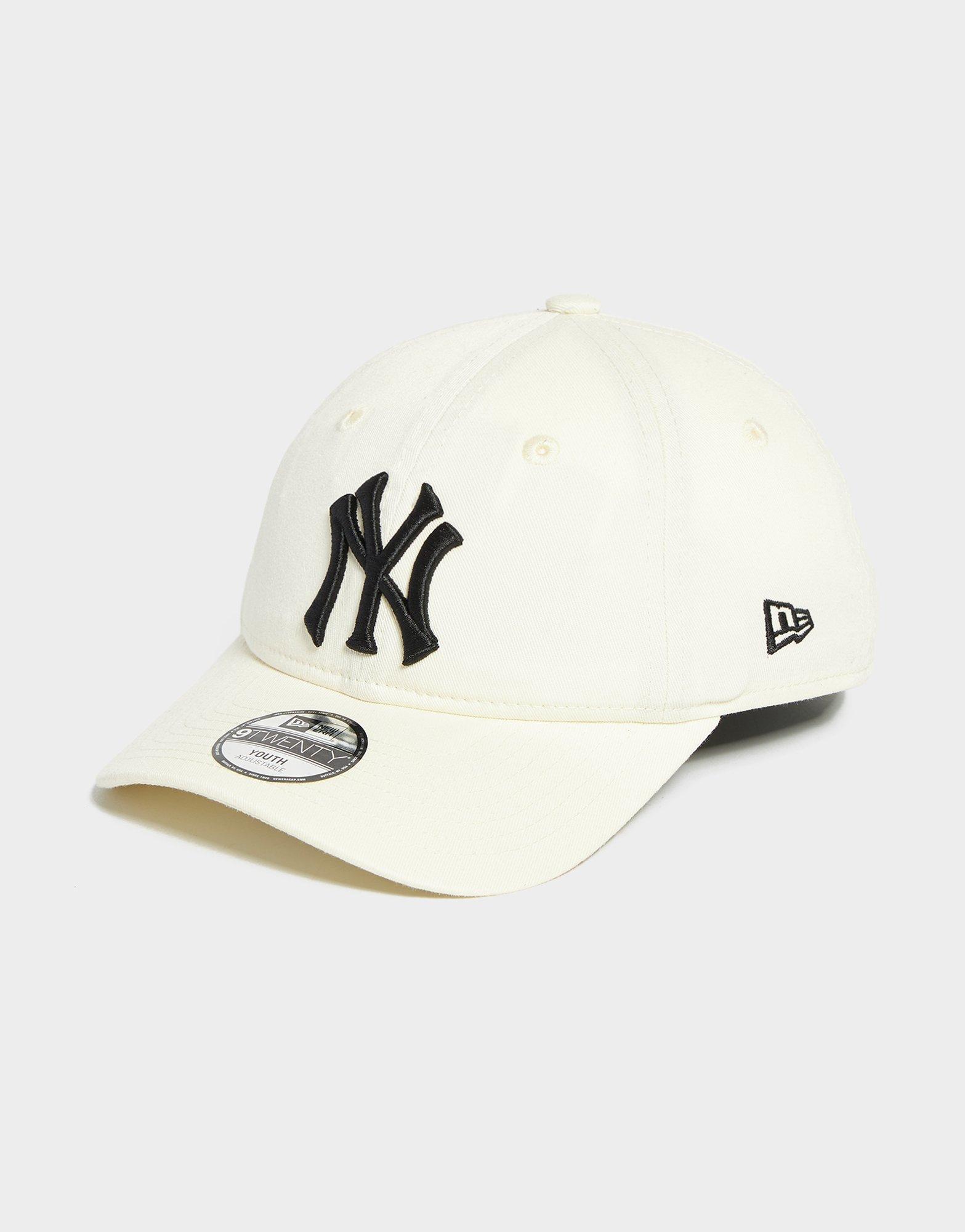 Upgrade your 'fits with this kid's MLB New York Yankees 9TWENTY Cap from New Era. In an Off-White colourway, this JD-exclusive, cap is made with soft but durable woven cotton for lasting wear. With a stitched panel construction, it has breathable eyelets through the crown and a pre-curved visor for a classic look. It has an adjustable back strap for a custom fit, and is finished with a Black Yankees logo at the front. Signed off with New Era branding. Style Code: 14943703
