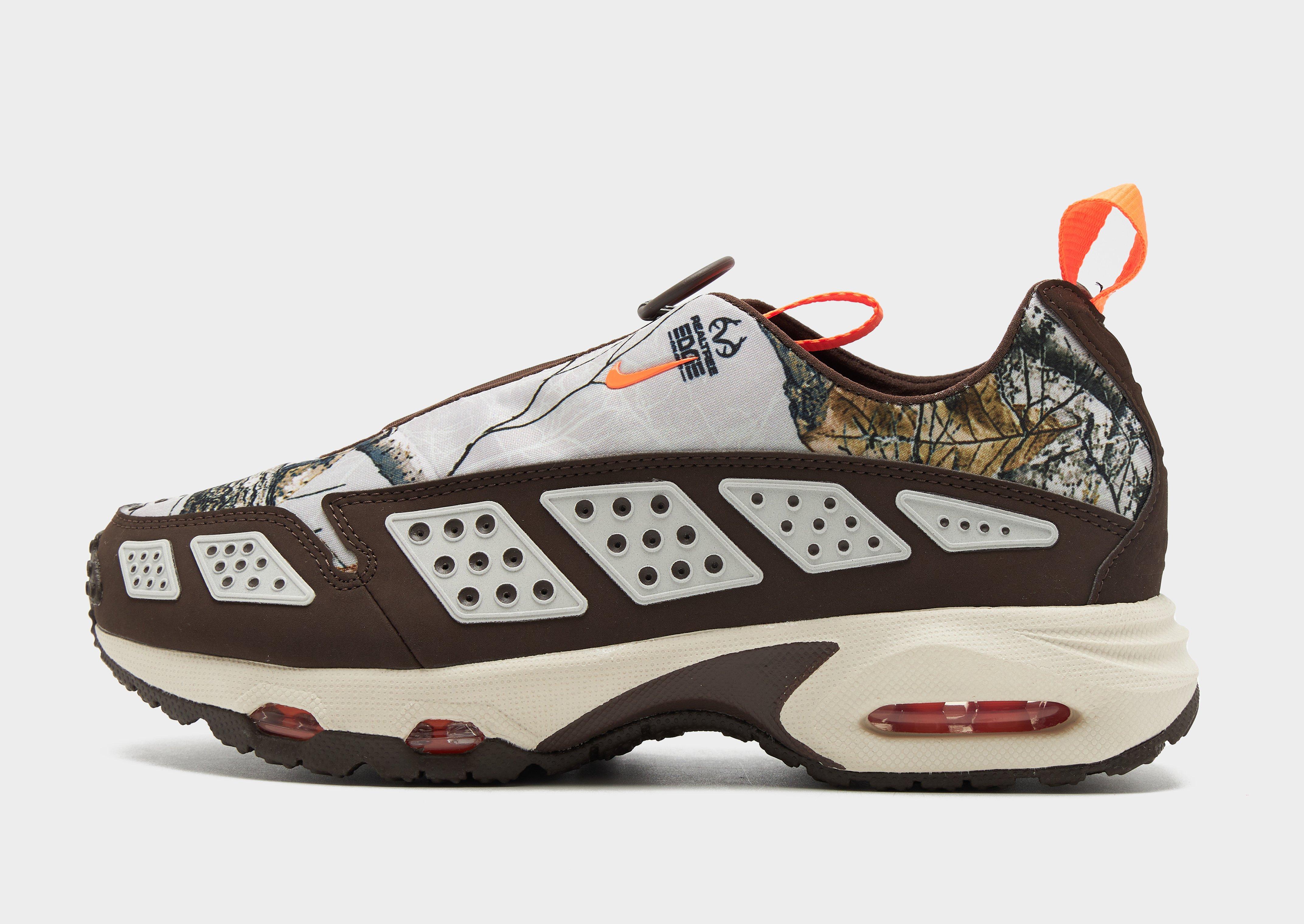 Bring a dose of the '90s to your rotation with these women's Nike Air Max SNDR trainers. In a Baroque Brown and Hyper Crimson colourway with Realtree details, these runners have a lightweight textile and synthetic upper. With the iconic zip fastening and plus padding around the collar, they sit above a chunky foam midsole with visible Air Max cushioning. With a grippy rubber tread for traction, they're finished up with bold Nike branding throughout. Style Code: IB2476-100