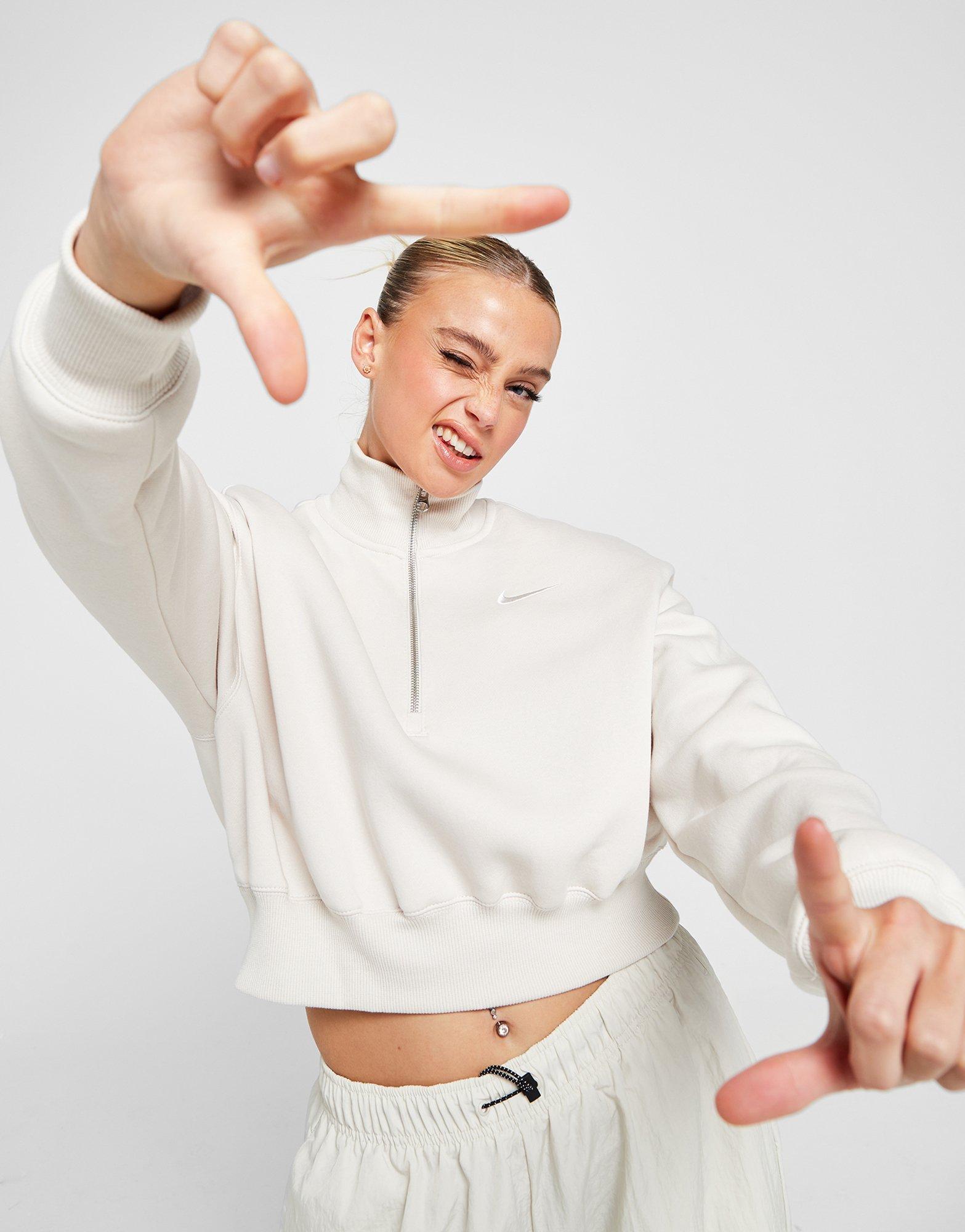 Update your chill-day looks with this women's Phoenix Fleece 1/4 Zip Crop Sweatshirt from Nike. In a Light Orewood colourway, this sweatshirt is made with Nike's super-soft Phoenix fleece for comfy wear. It features a quarter zip fastening with a stand-up collar, and stretchy, elongated ribbed trims to secure the fit. With a sleek cropped hem, it's signed off with the iconic Swoosh logo to the chest. Machine washable. | Our model is 5'8" and wears a size small.