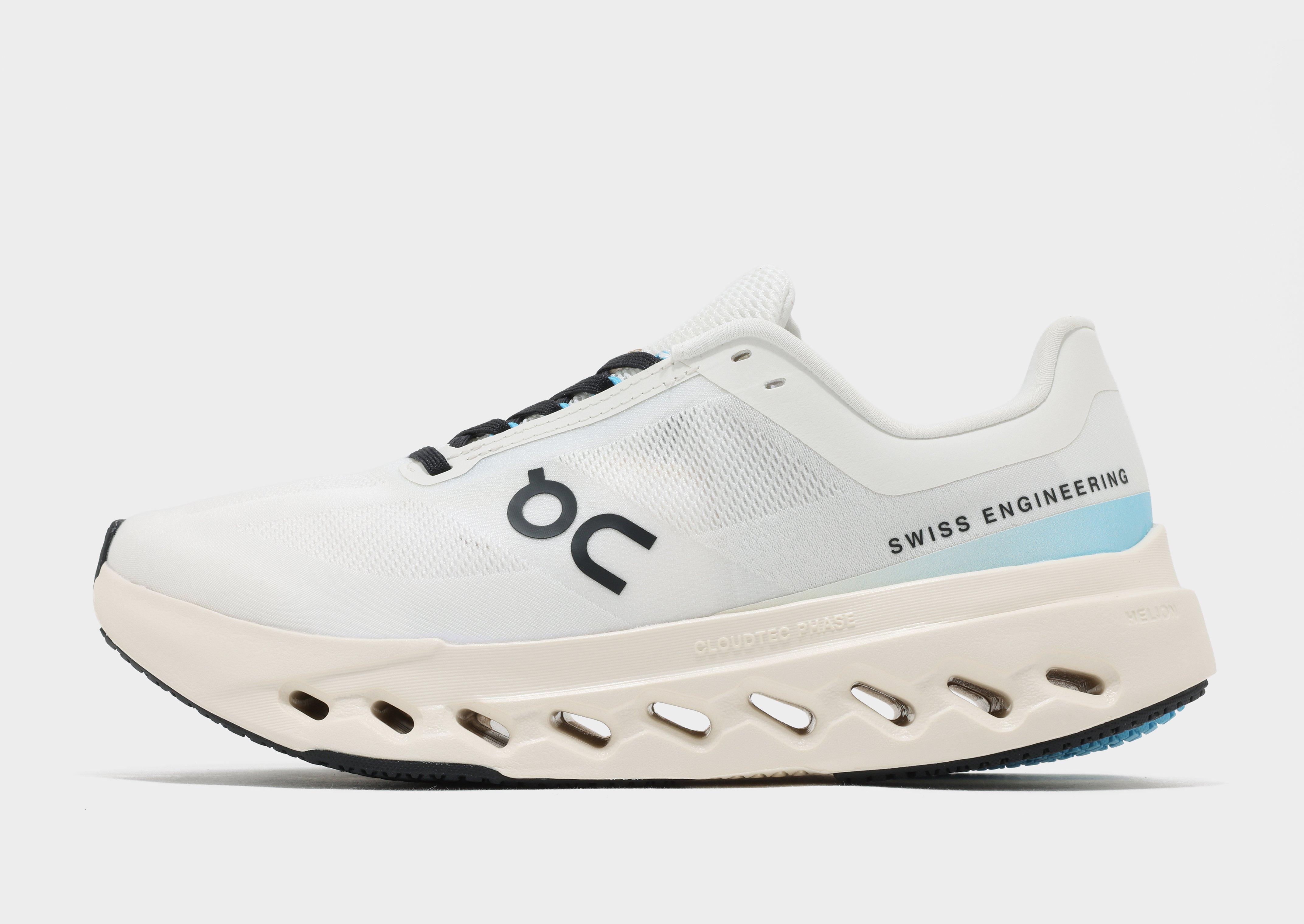 Lace up in Swiss-engineered runners with these men's Cloudsurfer Next shoes from On Running. In an Ivory White colourway with Light Blue details, these runners have a lightweight, breathable mesh upper with synthetic overlays to keep 'em cool. They feature a lace fastening and a padded collar for a secure fit, while the Helion superfoam midsole and CloudTec Phase cushioning offers a responsive ride as you rack up the miles. Sat on a grippy rubber outsole for total traction, they're signed off with signature On Running branding throughout. Style Code: 3ME30023387