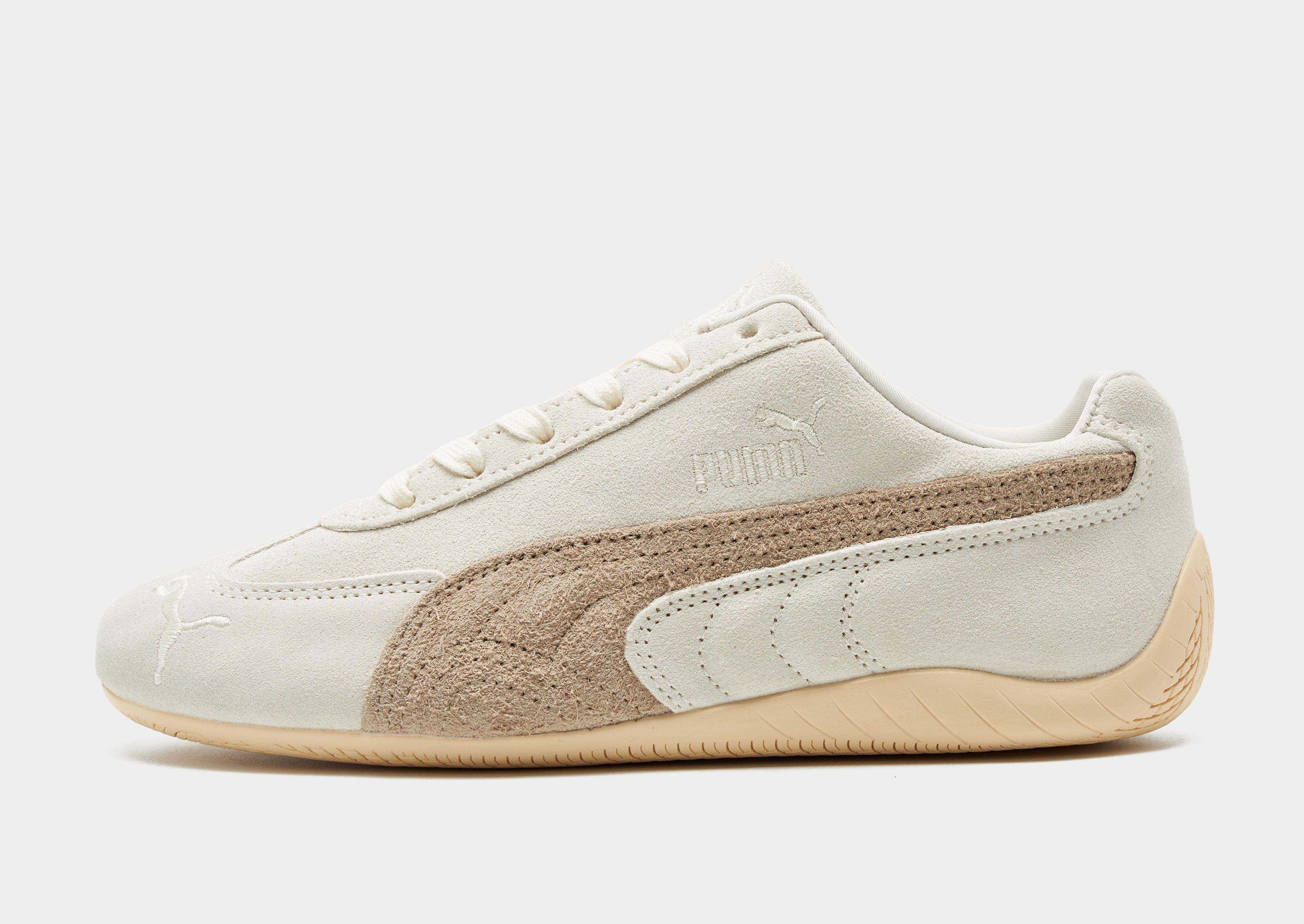 The iconic silhouette returns with the women's Speedcat OG sneaker from Puma. Landing in an Off White colourway with Brown details, this JD-exclusive low profile silhouette is paired with sleek details inspired by motorsport racing. The shoe's popularity has taken it from motor racing to the fashion world, with its vibrant colours and easy to wear design making it a must-have staple for your sneaker rotation. Crafted from a leather upper for an elevated look, a rubber outsole underneath provides traction. Finished off with the signature PUMA formstrip to the and gold foil branding to the sidewalls, and the iconic PUMA silhouette embroidered to the toebox. Style Code: 40361901