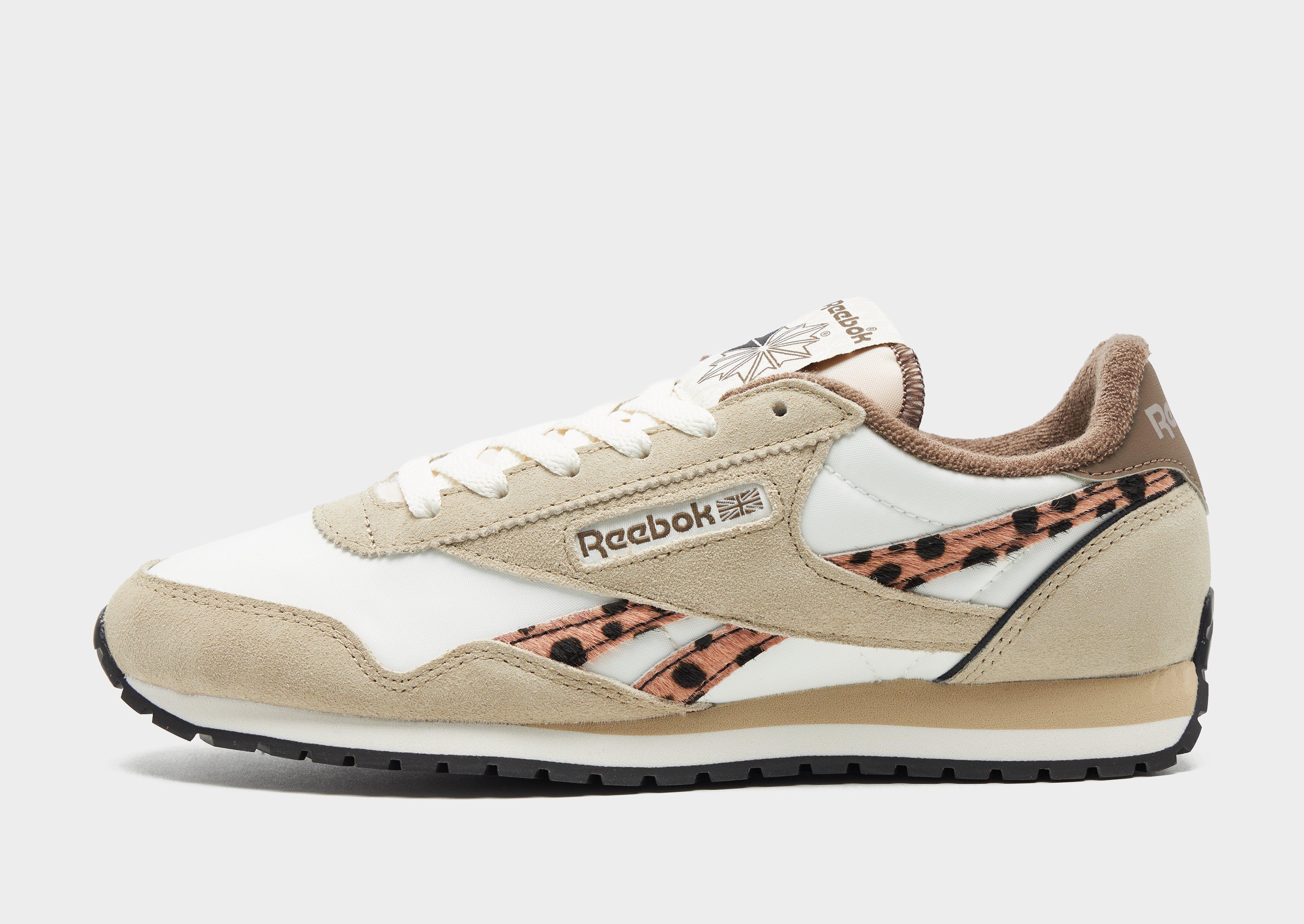 Lace up in signature style with these women's Classic AZ sneakers from Reebok. In a Cream and Beige colourway with Leopard Print details, these sneaks are cut from smooth and durable leather and breathable nylon for lasting wear. They feature a lace fastening to lock you in, with a padded collar for support and a textile lining for a snug fit. Underfoot, they sit on a soft foam midsole for a smooth ride, with a grippy rubber outsole for firm traction. Finished up with classic Reebok branding. Style Code: 100239219