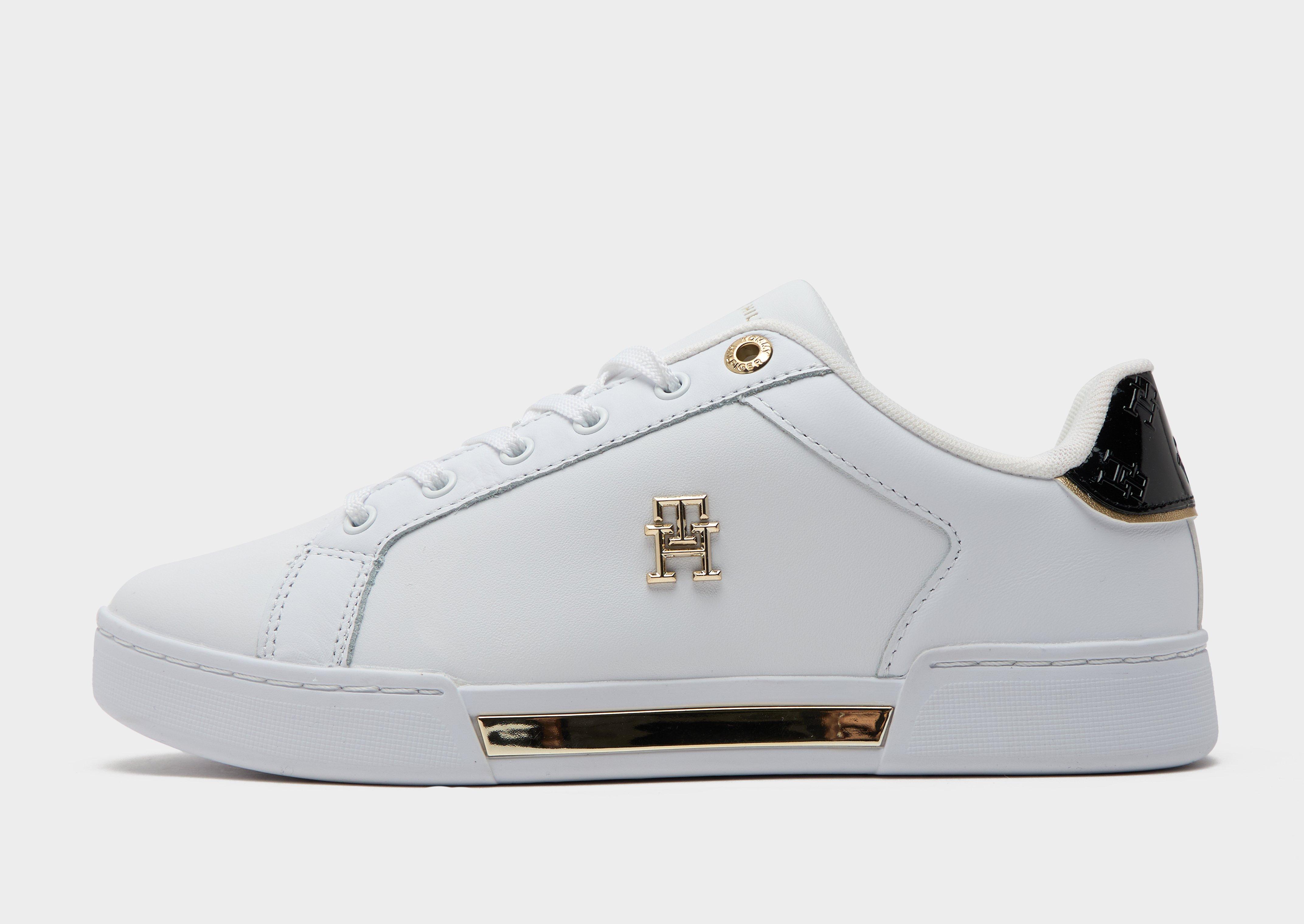 Add some premium style to your footwear rotation with these women's Katerina trainers from Tommy Hilfiger, the perfect blend of style and comfort for everyday wear. These trainers feature a sleek white leather upper, with iconic Tommy Hilfiger branding on the sides and tongue. The lace-up design ensures a secure and customizable fit, while the cushioned insole provides all-day comfort.