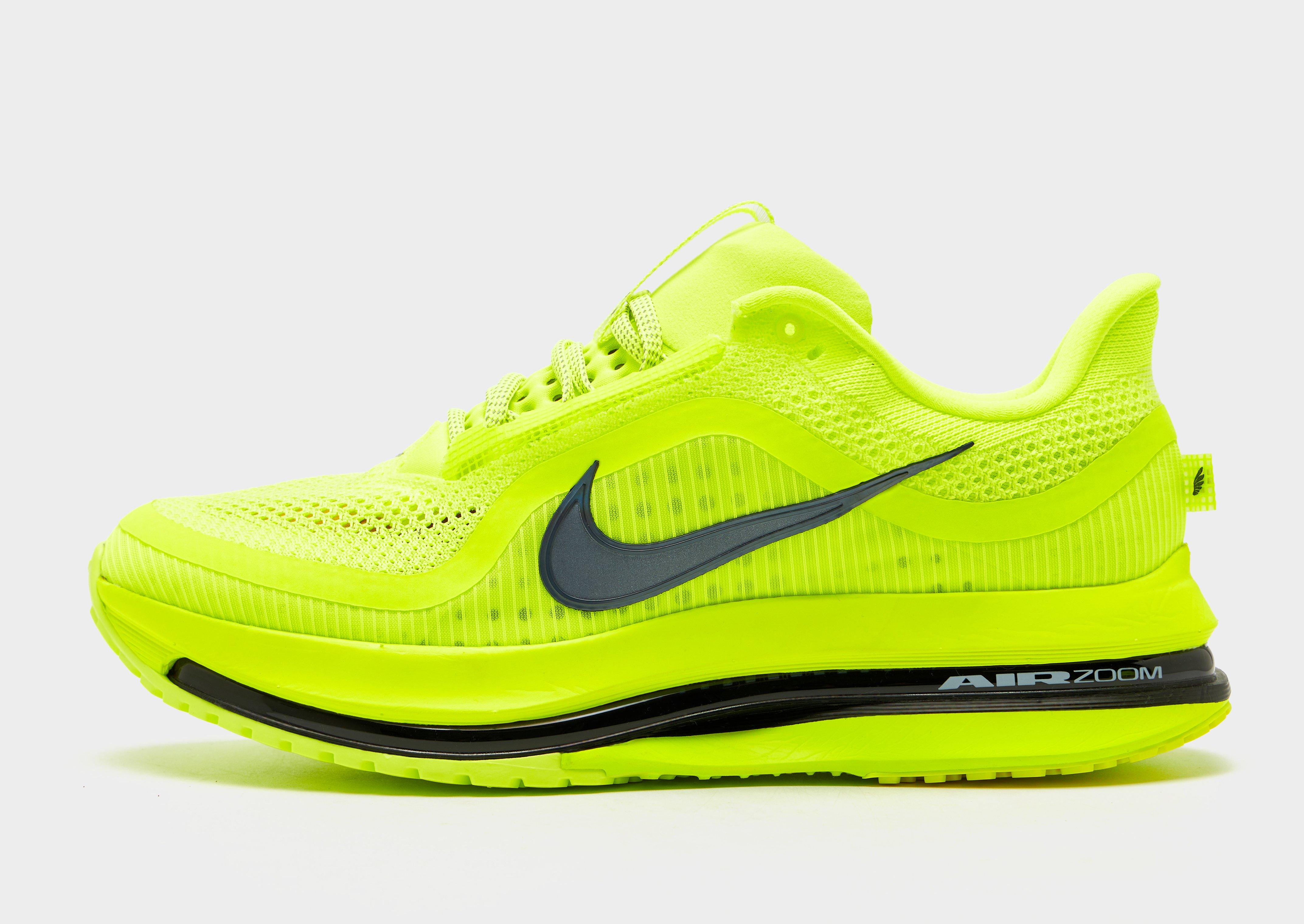 Running shoes. But levelled up. These men's Pegasus Premium trainers take things up a notch. Landing in a Volt Yellow colourway, they're cut from breathable mesh with synthetic overlays. A padded collar offers support. A pull-tab makes em easy to take off and on. Underfoot, they've tripled up. ZoomX foam, Air Zoom cushioning and ReactX foam combine for a super-smooth ride. Rubber to the outsole keeps you gripped. Signed off with the Swoosh.